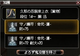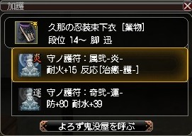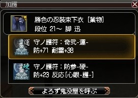 加えて反応系の護符が、着替え用の脚に1枚ずつ心眼と治癒が付いてるだけ。