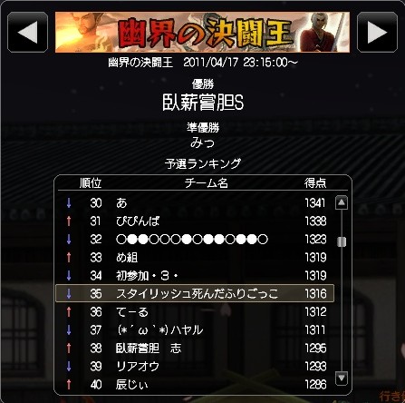 ただ、やっぱり跳躍ゲージや技力の管理が甘くなりがちだったのでその辺を今後注意したいところ。